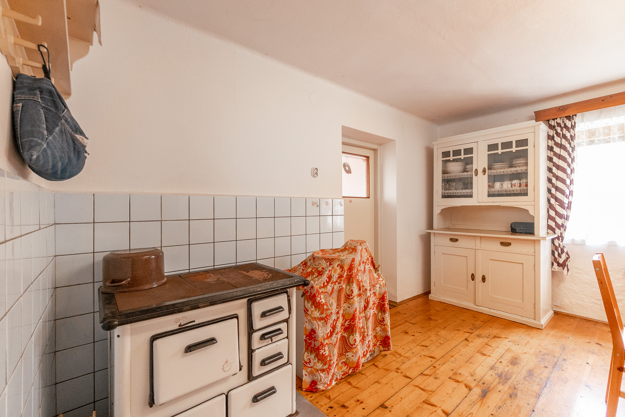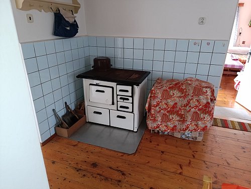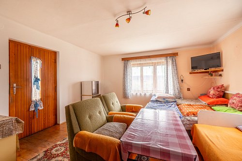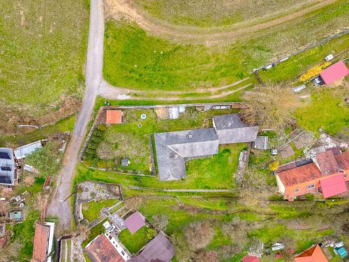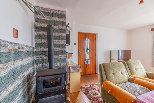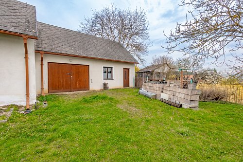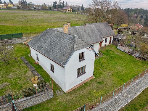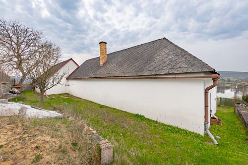 Na tomto místě s výhledem do údolí přehrady nabízíme budovu, jejíž vznik se datuje kolem roku 1880. Zásadní přestavby a přístavby se stavení dočkalo v sedmdesátých letech. Za pozornost stojí mohutné opěrné zdi z ručně tesaných kamenných kvádrů. Ač rodinný dům sloužil k žití několika generací a v současnosti se objekt stal rodinnou rekreační oázou, se sítěmi se zde čas zastavil. Voda je čerpána ze studny a WC je po celý čas suché. Předci spoléhali na sliby radních o vybudování vodovodu a kanalizace, které se místní dosud nedočkali. Dům se podsklepen menším klenutým sklepem se vstupem z kuchyně, kde se i v parném létu dají uchovat potraviny a nápoje lépe než „ze sedmého“. Dům díky masívním stěnám nemá výraznější tepelné úniky a je charakterizován v klasifikační třídě PENB – C. Velké půdní prostory se zachovalým trámovým s střešní krytinou vybízejí k vybudování podkrovních obytných prostor. Již nynější obytný prostor ve štítu s výhledem na Slapy je předzvěstí vzniku romantického nerušeného užívání. V každé obytné místnosti jsou kamna na tuhá paliva, krbová kamna a historický kuchyňský sporák s troubou taktéž na tuhá paliva. K domu je připojen přístavek charakterizován jako garáž, dílna, sklad s využitelným rovněž zachovalým podkrovním prostorem.